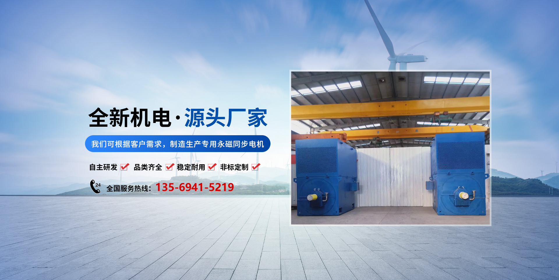 建築面積3萬餘平方米,公司現有員工100人,其中大專以上學歷科技人員30人,佔職工總數的30%。公司歷年來被評為輝縣市工業“輝縣市標準化先進集體”、“輝縣市誠信企業”、輝縣市“文明單位”。公司從事電機制造、永磁同步電機制造、電磁線生產、電機軟起動、電氣成套、變壓器製造。公司生產電機設備齊全,具有規範的質量管理體系。目前,公司與多家大中型企業和外資企業用戶合作,產品遠銷山東、四川、湖北、山西、重慶、西藏、天津、等全國20多個省市自治及東南亞地區。 近年來,通過科研投入、技術創新與瀋陽工業大學張炳義教授團隊合作研發製造磨機專用永磁直驅電機。在低速大轉矩永磁直驅電機及大中型高壓電機產品設計研發、生產製造、節能技術再造的生產中具有較強的競爭實力。公司擁有一支30餘人構成的磨機專用永磁直驅電機研發團隊,與瀋陽工業大學等研究單位及大型國有企業等建立了長期合作關係。 磨機專用永磁直驅電機是河南全新機電設備有限公司研發生產的高新技術產品。河南全新機電公司一直致力於永磁同步電機的研發、生產、銷售。經多年努力研發,自主創新,攻堅克難,以嫻熟的技術力量,科學的生產管理,所生產的永磁同步電機產品具有節能品類齊全、穩定耐用。我們可根據客戶需求,製造生產專用永磁同步電機。 河南全新機電設備有限公司生產的永磁同步電機變頻驅動器,解決了大功率電機的軟起動。變頻驅動器與永磁電機的結合,提高了電機的軟起動效果和工作時的節電效果。 2011年申報“輝縣市電機軟啟動工程技術研究中心”、2014年申報“新鄉市電機軟啟動工程技術研究中心”、“河南省科技型中小企業”、2016年公司申報“新鄉市知識產權優勢企業”、“新鄉市貢獻獎”、2017年申報“河南省知識產權優勢企業”、2018年申報“高新技術企業”、2019年申報“知識產權管理體系認證”。